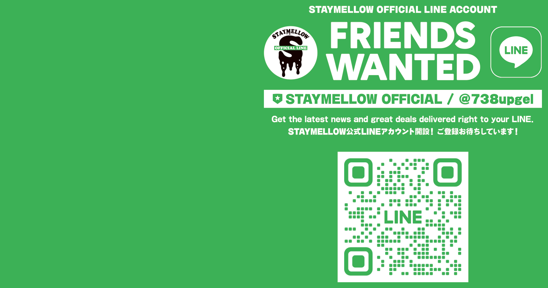 2026/03/20 / 最終更新日時 : 2026/03/20 STAYMELLOW NEWS 公式LINEアカウント開設! STAYMELLOWの公式LINEアカウントを開設いたしました! おともだち登録していただくと店舗とオンラインショップで利用できるクーポンがおまけで付いてきます!! また、店舗にご来店いただけるお客様用にLINEショップ […]Continue reading «公式LINEアカウント開設!»